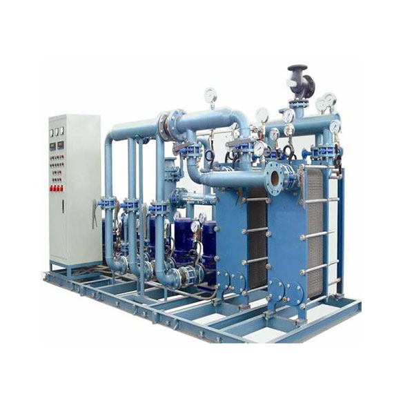 在板式换热器机组中,热量传递是通过板间的热传导和对流传热来实现的。当两种介质通过板间通道流动时,热量会从温度较高的介质传递到温度较低的介质中。具体的过程如下: